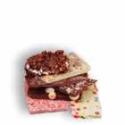 Manchmal gibt es sie noch, eine Tüte voll bunter Süßigkeiten am Kiosk um die Ecke. Wir erinnern uns daran, was für eine Freude so ein Tütchen damals für uns war. Deshalb haben wir die Idee aufgegriffen und bieten Euch bunte Beutel voll Bruchschokolade an. Allein der Anblick ist unglaublich verlockend. Lauter leckere Schichten stechen ins Auge: weiße Schokolade, Vollmilchschokolade, Zartbitterschokolade. Mal pur, mal per Hand bestreut mit Nüssen oder Mandeln, mit Schokolinsen oder Florentinermasse, mit Erdbeerstückchen oder gemahlenen Himbeeren.