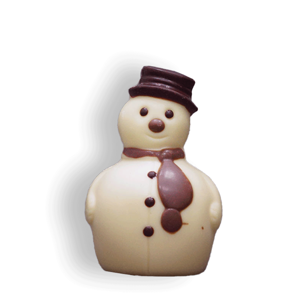 Für diesen Schneemann müssen wir nicht auf den ersten Schnee warten. Dennoch braucht es Geduld, bis er fertig geformt ist. Beginnend beim naturbelassenen Anbau der Kakaopflanzen von Kleinbauern-Kooperativen in Mittelamerika über das Rösten, Schälen und Conchieren der Kakaobohnen sowie das Temperieren der Kakaomasse bis zur Wahl der Gießform. Die richtige Temperatur ist genauso wichtig wie beim Schneemann Bauen. Für einen stabilen Schneemann ist am besten Pappschnee geeignet, bei Temperaturen um die Null Grad. Für die Herstellung eines Schokoschneemanns sind höhere Temperaturen erforderlich. Die feste Kakaomasse wird im ersten Schritt bis zu einer Temperatur von 50° C erhitzt. Ist die Schokomasse geschmolzen, wird sie unter Rühren abgekühlt auf etwa 26 bis 28° C. Im Anschluss ist ein leichtes Erhitzen erforderlich. Bei 29 bis 33° C ist die Temperatur endlich perfekt für den letzten Schritt: Das Gießen in die Form. Dazu braucht es kein Schneegestöber, sondern Chocolatierskunst.