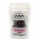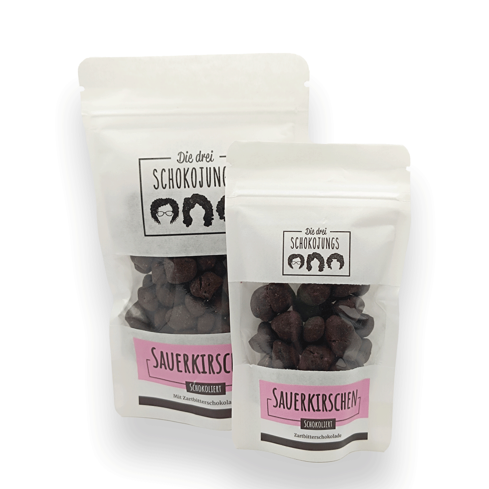 Kirsch-Kakao-Kugel: Sauerkirschen (mindestens 61 %, getrocknet) schokoliert mit edler Zartbitterschokolade (mindestens 70 % Kakao). Wählt einfach Eure Packungsvariante (50 und 130 g) aus.